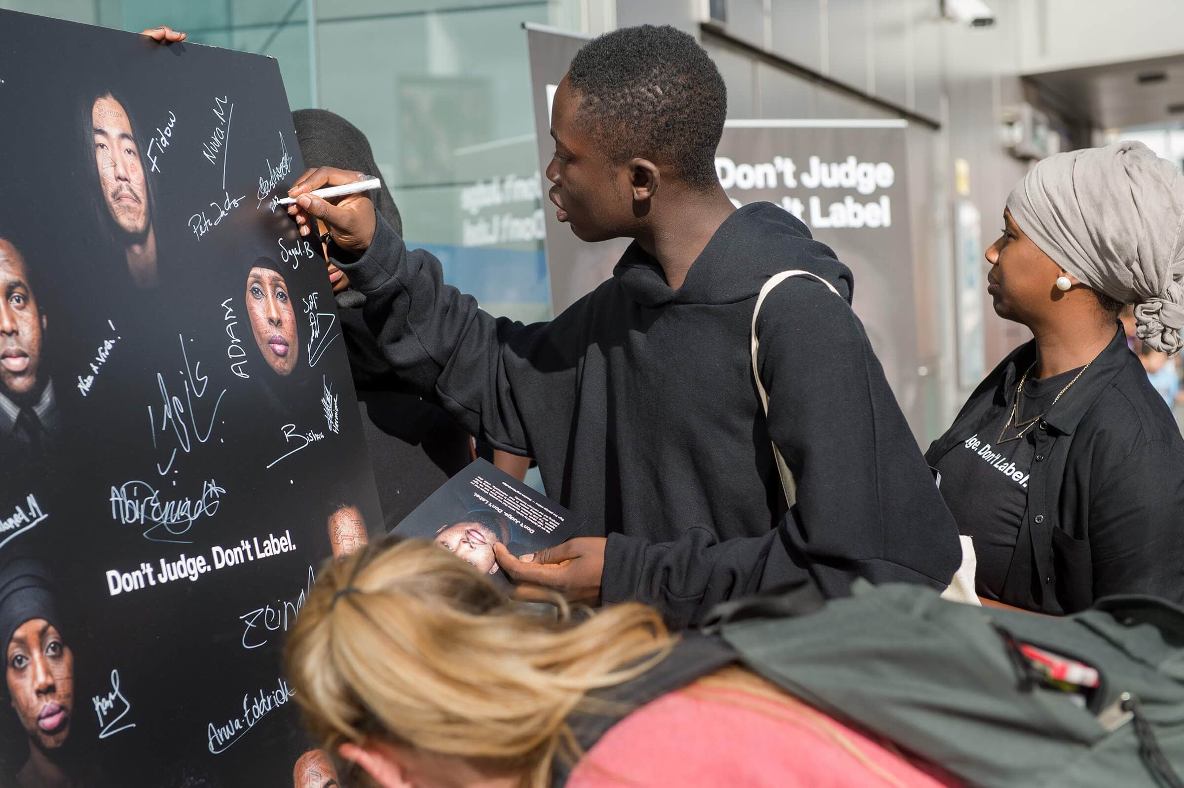 Don't Judge, Don't Label targets the first stage, prejudice, aiming to halt the progression of discrimination and hate crime. It also counteracts how prejudice and hate are spread. Hate groups, as well as some sections of the media, perpetuate negative stereotypes and prejudice by spreading misinformation and creating a drip feed of subtle negativity, which lays the foundations of hate and fear towards particular communities.